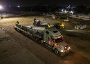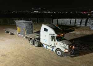 While crane operations advanced venue construction during the day, BME crews worked overnight to support the build while reducing impact on local traffic and surrounding events. The BME crews transported the concrete barriers and fencing materials that lined the course to create a critical safety buffer between race cars and spectators.